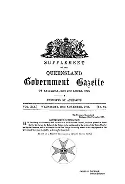 - ^ "Queensland Government Gazette". No. 64. 29 November 1876. p. 1141.