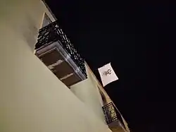 The Flag of Querétaro is the flag used by the Mexican state of Querétaro. The flag was adopted December 31, 2017.[1] The State Flag consists of a white rectangle with a ratio of four to seven between the width and length; in the center it bears the State Coat of arms, placed in such a way that it occupies three-quarters of the width.[2]