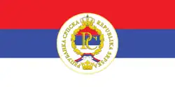 Unofficial flag of Republika Srpska charged with former coat of arms (1995–2007)