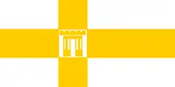 | Design | A white Nordic Cross on a golden background with the coat of arms. |