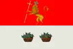 ?–present | Flag of Vladimir city | Red background with a yellow Lion holding a cross and wearing a crown. |