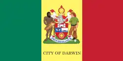 2009–present | Flag of the City of Darwin[21] | According to council policy, Darwin maintains both the coat of arms flag and a logo flag.[21] |