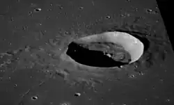 Flamsteed is a small lunar impact crater located on the Oceanus Procellarum, which is named after British astronomer John Flamsteed.[1] It lies almost due east of the dark-hued Grimaldi, and north-northwest of the flooded Letronne bay on the south edge of the mare.