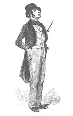 In the period after the French Revolution of 1848, during which the Empire was reestablished with clearly bourgeois pretensions of "order" and "morals", Baudelaire began asserting that traditional art was inadequate for the new dynamic complications of modern life. Social and economic changes brought by industrialization demanded that the artist immerse himself in the metropolis and become, in Baudelaire's phrase, "a botanist of the sidewalk".[20] David Harvey asserts that "Baudelaire would be torn the rest of his life between the stances of flâneur and dandy, a disengaged and cynical voyeur on the one hand, and man of the people who enters into the life of his subjects with passion on the other".[22]