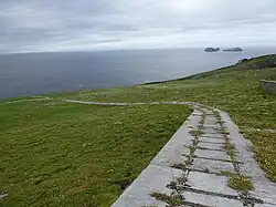 ![]() The Chapel of St. Flannan can be seen on the slope to the right of the lighthouse on Eilean Mòr. | |