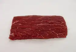 Flat iron steak (US), butlers' steak (UK), feather steak (UK) or oyster blade steak (Australia and New Zealand) is a cut of steak cut with the grain from the chuck, or shoulder of the animal.[1][2]
