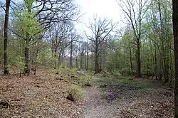 The wood is mainly oak and birch, but there are also areas of sweet chestnut and former plantations of Scots pine and beech. The site is notable for its invertebrates, with almost 500 species of moths recorded and the rare oak mining-bee.[2]