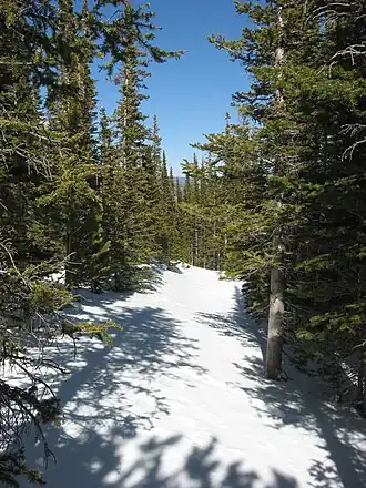 The Flattop Mountain Trail, also known as the Grand Trail or the Big Trail, was built in 1925 in Rocky Mountain National Park in the Larimer County portion of the U.S. state of Colorado. Built in 1925, and rehabilitated in 1940 with Civilian Conservation Corps labor, it is listed on the National Register of Historic Places. The trail begins at 9500 feet of elevation at Bear Lake and climbs Flattop Mountain to a maximum elevation of 12,324 feet on the Continental Divide.[2]