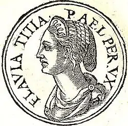 ![]() Imaginary depiction of Flavia Titiana from Promptuarium Iconum Insigniorum | |||||||||