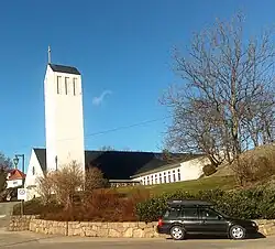 Flekkerøy Church (Norwegian: Flekkerøy kirke) is a parish church of the Church of Norway in Kristiansand Municipality in Agder county, Norway. It is located in the village of Mæbø on the island of Flekkerøy in the city of Kristiansand. It is the church for the Flekkerøy parish which is part of the Kristiansand domprosti (arch-deanery) in the Diocese of Agder og Telemark. The white, concrete church was built in a rectangular design in 1960 using plans drawn up by the architect Gabriel Tallaksen. The church seats about 760 people, but when a back wall is moved, the room can accommodate up to 900 people. The church is surrounded by a cemetery.[1][2]
