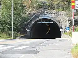 The Flekkerøy Tunnel (Norwegian: Flekkerøytunnelen) is a subsea road tunnel on the county road 457 in the municipality of Kristiansand in Agder county, Norway. It is the southernmost subsea tunnel in Norway. The tunnel runs under the strait between Kroodden on the mainland and the island of Flekkerøya. The tunnel is 2,321-metre (7,615 ft) long, it reaches a depth of 101 metres (331 ft) below sea level, and the maximum gradient is 10%. Construction started on the Flekkerøy tunnel on 1 August 1988. The breakthrough in the tunnel was on 6 March 1989 and the tunnel was opened on 15 August 1989. It replaced a ferry connection between Møvik in mainland Kristiansand and Lindebøkilen on the island of Flekkerøy.[1][2]
