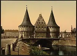 Since Philip was in Bruges, in the hands of the rebels, Maximilian attempted to negotiate, offering to dismiss members of his court that displeased the Flemish.[8] Simultaneous troubles in the Prince-Bishoprics of Liège[a] and Utrecht,[b] meant that the archduke could not intervene until 1484.[9] His relationship with Flanders deteriorated as the Knights of the Golden Fleece at Dendermonde deposed him as head of their Order, Bruges refused to admit the archduke into their city with a company of more than a dozen people, and the commander of the Flemish armies proclaimed himself lieutenant-general in the name of Philip the Fair.[2]: 446