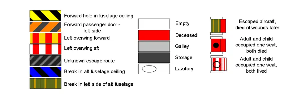 Two of the four flight attendants (Dunn and Marr) and 12 of the 101 passengers on board died in the accident.[1]: 5 [10] Medical examinations determined that all but one of the fatalities were due to smoke inhalation.[1]: 30 [10] One passenger, who had successfully exited the aircraft, attempted to re-enter the aircraft in order to assist his wife and other passengers still trapped inside;[1]: 5 he suffered severe burns and died 11 days after the accident from his injuries.[1]: 30