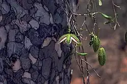 Larvae of the moth Opodiphthera astrophela feed on the leopardwood tree.[11] An unidentified beetle in the genus Anilara can cause serious damage to the leopardwood tree.[12] The mistletoe Amyema lucasii grows almost exclusively on the F. maculosa.[13]