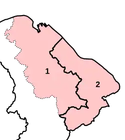 From 2024, Flintshire is covered by two UK parliament constituencies, Alyn and Deeside and Clwyd East, with Delyn being abolished.[16] Both parliamentary seats are held by the Labour Party.[17] The Senedd uses the old set of Alyn and Deeside, and Delyn.