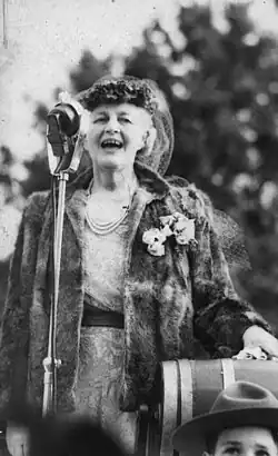 In 1950, in recognition of her charity work, Lady Eaton was made a Dame of the Most Venerable Order of the Hospital of St. John of Jerusalem.[3] In the 1940s and 1950s, a false rumour persisted that Lady Eaton was the inventor of red velvet cake which was sold in the store's bakery.[4] At the height of the store's success, Lady Eaton was popularly known as "Mrs. Canada".[5]