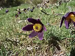 | Red Pasque Flower | Pulsatilla rubra | Ranunculaceae | Pastures, dry moors | Eastern slopes of mountain ranges, endemic to the Massif Central. | >800 m | ![]() | |