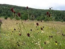 | Great burnet | Sanguisorba officinalis | Rosaceae | Peat bogs, wet meadows | The entire massif, common in Aubrac | >800 m | ||
