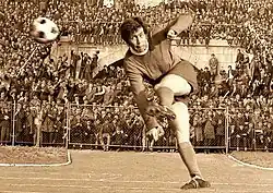 Dumitrache won three league titles with The Red Dogs in 1971, 1973 and 1975.[3][4][7][11] In the first one he contributed with 15 goals scored in the 28 matches he was used by coaches Nicolae Dumitru and Ionescu.[3][11] In the second he played 26 games and scored 15 goals under the guidance of Ion Nunweiller and in the third he made 10 appearances with four goals netted while working once again with Dumitru.[3][4][7][12] During his time at Dinamo, Dumitrache also played 16 games and scored six goals in European competitions, including netting once in a 11–0 win over Crusaders in the 1973–74 European Cup and helping the team earn a 1–0 home win over Real Madrid in the 1975–76 European Cup.[3][13] He became the Divizia A top-scorer twice, first in 1969 with 22 goals and the second in 1971, alongside Constantin Moldoveanu and Gheorghe Tătaru with 15 goals.[3][4][7][14] Dumitrache won two times (1968, 1969) the Romanian Footballer of the Year award, also in 1970, he was nominated for the Ballon d'Or along with Dinamo teammate Cornel Dinu.[3][4][7][15][16][17] Italian club Juventus wanted to sign the 24-year-old Dumitrache after his performance in the 1970 World Cup, making an estimated $1.5 million offer for him, but Nicolae Ceaușescu's communist regime refused.[4][7][2]
