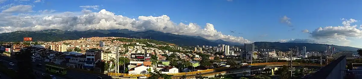 The city, in recent years grown to connect with Bucaramanga, forms the entry point to the Chicamocha Canyon, located at an hour drive from the city, and hosts touristic activities with a paragliding school on the Mesa de Ruitoque, the Ruitoque Massif in the southwest of the city.[16] Local buses to tourist hotspots as San Gil and the Chicamocha Canyon leave from a transport station called "Papi Quiero Piña" ("Dad, I want pineapple").[17]