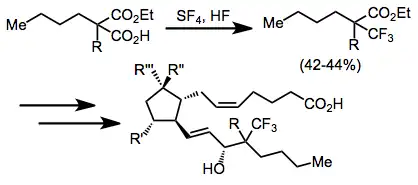 A prostaglandin bearing a trifluoromethyl group at C-16 is prepared using sulfur tetrafluoride.[14]