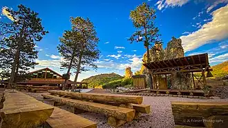 The Flying W Ranch was destroyed by the Waldo Canyon fire on June 26, 2012.[2][3] The owners have committed to rebuilding it and portions the ranch reopened July 10, 2020.[4] The General Manager at the time, Jay Chladek, had his wedding and reception June 22, 2012, and left for his honeymoon the morning of the evacuation. He was still on his honeymoon when the Flying W Ranch was destroyed by the fire. He worked for the Flying W Ranch for almost 27 years. The final event at the location was a wedding in the Old Chapel on Saturday June 23, 2012, the day the fire started. The wedding party and guests were evacuated by police immediately following the service as staff and employees rushed to save as many artifacts as possible.[5]