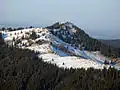 The summit is on the border between the municipalities of Gaißach and Bad Wiessee. It is usually climbed from Bad Wiessee but can also be climbed from Lenggries via Geierstein.[1] Fockenstein is also often climbed in winter, especially as part of a rather easy ski tour. While the path to the Aueralm can usually be mastered without any problems, the steep summit slopes must be assessed for avalanche danger.[3] The Maximiliansweg from Füssen to Königssee also leads over the Fockenstein. In summer, two hours are required for the ascent from Bad Wiessee and 1.5 hours for the descent.[4] From Lenggries (from Hohenburg Castle) over the Hirschtalsattel the ascent takes about 2.5 hours and the descent about two hours.