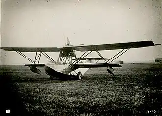 The Fokker B.I was a reconnaissance flying boat built in the Netherlands in 1922.[1] The B.I was followed by an improved version, the B.III in 1926. It was a conventional biplane flying boat design, with staggered sesquiplane wings braced by struts arranged as a Warren truss. The engine was mounted pusher-wise on the top wing. The duralumin hull featured three open cockpits - one at the nose for a gunner, one in front of the lower wing for the pilot and engineer and one behind the wings for another gunner. The B.I was amphibious, equipped with main undercarriage that folded back along the hull, but this feature was omitted in the B.III. The B.I was flown in the Dutch East Indies by the Naval Air Service for a number of years, and although it gave good service, no further examples were ordered from Fokker.[2]