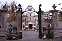 The park continued to change hands and eventually disappeared over the course of the 19th century.[11] Under the Przeździecki family, the property was partitioned, the former park alley was transformed into a street, and individual plots of land were sold.[12] Between 1875 and 1877, Konstanty Zamoyski erected an imposing Renaissance Revival mansion at its far end.[13] Designed by renowned Polish-Italian architect Leandro Marconi, the building survived to this day.[13] Another extant historical edifice is the Przeździecki Palace with its two-storey arcaded colonnade, located at Foksal 6.[14] It was rebuilt in its current Neo-Renaissance form between 1951 and 1953.[15] Simultaneously, many city-style tenements and urban architecture began appearing close to the intersection with Nowy Świat.[16] The Neo-Gothic house at Foksal 19 and Teatr Sabat at Foksal 16 are notable landmarks.[17]