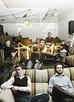 Fond of Tigers is a Canadian seven-piece post-rock instrumental band from Vancouver. An article in Exclaim! describes the band's sound: "with cacophonous explosions of percussion and guitar underlying wild strains of trumpet and violin, only to drop out for unexpected, ambient glimmers of a once-roaring piece."[1]