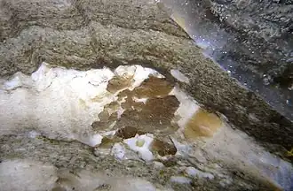 Fontarnauite is a relatively recently described, rare sulfate, borate mineral with the chemical formula (Na,K)2(Sr,Ca)(SO4)[B5O8(OH)]·2H2O. It is found in an evaporite boron deposit. It coexists with other evaporite boron minerals, especially probertite. It is monoclinic, crystallizing in the space group P21/c.[4][2]