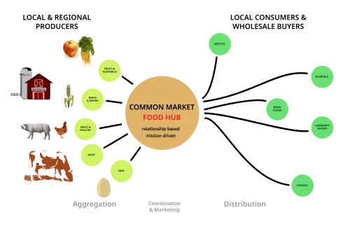 - Aggregation: Compile products from different suppliers/farms to distribute through a single channel