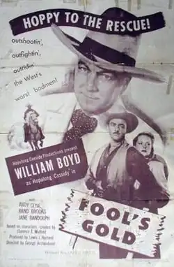 Fool's Gold is a 1947 American Western film, directed by George Archainbaud and written by Doris Schroeder. The film stars: William Boyd, Andy Clyde, Rand Brooks, Robert Emmett Keane and Jane Randolph. The film was released on January 31, 1947, by United Artists.[1][2] This is the 56th film of the 66 in the series and the first one produced by William Boyd Productions, instead of Harry Sherman.[3]
