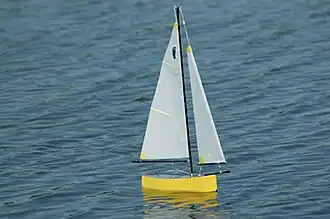 The Footy is a very small (usually) radio-control sailboat whose length is a mere 12 inches (30.5 cm). The hull can be made from a fiberglass mold, 3D printed or simply with thin sheets of plywood or even depron fitted together. Two servos are used, one to control the sail and one for the rudder. These are the smallest remote-controlled boats for which the world championships are held.