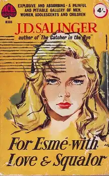 In 1959, Harborough Publishing (London) issued a paperback edition of "For Esme" that featured Esme as a "dishy blonde"[9] on the cover.[10] Salinger disapproved of this edition so emphatically that he never spoke to his UK publisher again.[9]