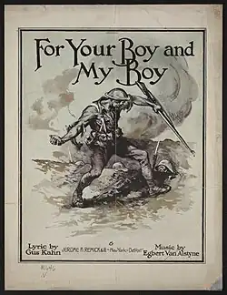 "For Your Boy and My Boy" is a 1918 song composed by Egbert Van Alstyne, with lyrics written by Gus Kahn and published by Jerome H. Remick & Co. The song was performed by Al Jolson[1] and later reached No. 4 on the top 100 US songs of 1918 with a cover by the Peerless Quartet.[2]