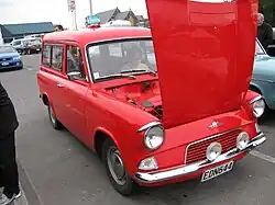 Like late-'50s Lincolns and Mercurys (and later the Citroën Ami of France and the Consul Classic), the car sported a backward-slanting rear window so that, according to contemporary marketing claims, it would remain clear in rain. In fact, that feature was copied from the 1958 Lincoln Continental,[22] where it had been the accidental result of a design specification for an electrically opening (breezeway) rear window. An estate car joined the saloon in the line-up in September 1961. The instrument panel had a red light for the generator and a green one for the oil pressure.[23]