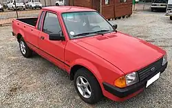 The first-generation Bantam was introduced in South Africa in 1983. It was intended to compete for market share that was, at the time, almost entirely monopolised by Nissan's B140 1400 Bakkie (which had been derived from the B110 sedan), with the remainder accounted for by the recently released Volkswagen Caddy. The Bantam (named after a breed of fowl known for its small size and courageous, defiant nature) was based on the Mark III Ford Escort.[1] It featured a South African-developed load box, tailgate, rear lights, rear quarter windows and leaf-sprung, dead-axle rear suspension.