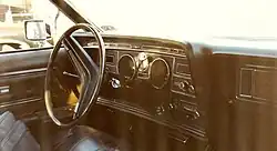 Aside from the dashboard, the interior was also shared with the Mark IV. Instead of the square gauges used by the Mark IV, the Thunderbird used round dials for the speedometer, fuel gauge, and clock. To the driver’s left were the climate control controls and the light controls; to the right were the radio controls, wiper controls, and information center. This dash layout would remain through the 1976 model year. Base price was US$5,293 ($39,788 in 2024 dollars [5]) and a total of 57,814 cars were built for this model year.