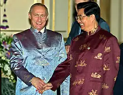 Prime Minister Manmohan Singh also agreed with his counterpart by stating in a speech given during President Putin's 2012 visit to India, "President Putin is a valued friend of India and the original architect of the India-Russia strategic partnership".[75] Both countries closely collaborate on matters of shared national interest these include at the UN, BRICS, G20 and where India has observer status and has been asked by Russia to become a full member.[76] Russia also strongly supports India receiving a permanent seat on the United Nations Security Council. In addition, Russia has vocally backed India joining the NSG[77] and APEC.[78] Moreover, it has also expressed interest in joining SAARC with observer status in which India is a founding member.[79][80]
