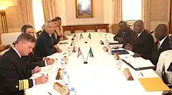 The Second Congo war was a major African continental war that began in the Democratic Republic of Congo in 1998, and involved nine different African countries.[34] Zambia was not a belligerent in this military engagement, but sought to facilitate peace and an end to the fighting. Representatives from various international organizations such as the United Nations, met on 21–27 June 1999 in Lusaka in order to draft a resolution to the conflict.[35] The ceasefire agreement set to end the fighting, deploy peacekeeping forces and release prisoners of war on both sides of the fighting. Heads of state from Angola, the Democratic Republic of the Congo, Namibia, Rwanda, Uganda, Zambia, and Zimbabwe convened in Lusaka, Zambia on 10 July 1999 to sign the Lusaka Ceasefire Agreement.[36] Ultimately hostilities continued despite the passage of the Peace Agreement, and the official fighting did not resolve itself until 2003.[37]