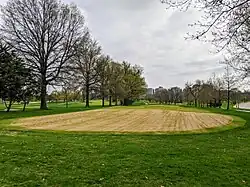 In 1973, Barnes-Jewish Hospital, located across Kingshighway from the eastern edge of the park, leased an area of land in Forest Park located to its south for construction of an underground parking garage.[20] After construction was complete, the surface was restored and a playground was installed; in 1983, the lease was extended to 2050 and the garage was expanded to more than 1,900 spaces.[20][21] Starting in 2006, the hospital engaged the city to renegotiate the lease to allow for the construction of a building on the site, known as Hudlin Park (although part of Forest Park).[21] The hospital proposal also included an extension of the lease by 46 years to 2096, providing the hospital 90 years of tenancy.[21] Under the proposal, the annual rent would increase from $150,000 to between $1.6 and $2.2 million.[21] The hospital sought to lease more than 12 acres (49,000 m2) for which it would pay $2.2 million, or as an alternative it would lease the current 9.3 acres (38,000 m2) for which it would pay $1.6 million a year.[21]