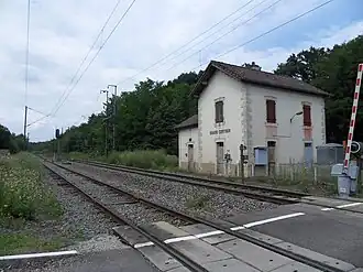 The defunct railroad station of Grand-Contour, situated within the forest | |