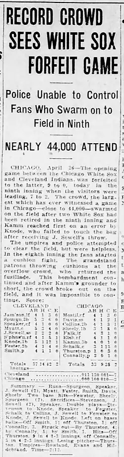 - ^ "Riot by Indians' Fans in 9th Forfeits Game to Rangers" (PDF). The New York Times. June 5, 1974. p. 35.