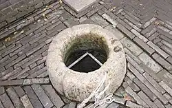 There is an old well behind the Garret. In the brandreth, the scratches caused by the rub between the role and the well can be seen clearly. The residence kitchen was located southeast of the old well. In front of the kitchen, one can see the vegetable plot. Little Zhou spent a lot of time with his wet nurse here. Beside the old well, there are two ancient elm trees, each about 20 meters high. They are protected by the Jiangsu province government.[4]