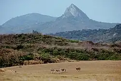 However, deer are easily kept in captivity and there were a number of captive populations of C. n. taiouanus. In 1984 Taiwan’s Council of Agriculture funded the Sika Deer Reintroduction Project, based at Kenting National Park on the southern tip of the island. Twenty-two deer were transferred from the Taipei Zoo to serve as a founder population. Over the next 10 years the deer were maintained in enclosures until their eventual release into the National Park in 1994. Altogether over 200 deer have been released and the current population, now spread beyond the park borders, is estimated to exceed 1000 individuals.[6] Discussions regarding other possible reintroduction sites, including Yangmingshan National Park near Taipei, are ongoing. Daqiu Island, Beigan Township, Lienchiang County (the Matsu Islands) is known for its population of Formosan sika deer introduced in the 1990s.[7][8]