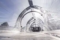 The new scientific orientation led to a name change and "Forschungszentrum Jülich GmbH" (FZJ) came into being in 1990. Forschungszentrum Jülich is a founding member of the then Association of National Research Centres (AGF, 1970), which became the Helmholtz Association of German Research Centres in 1995.[17] In 2004, the Ernst Ruska-Centre for Electron Microscopy was founded. It is equipped with transmission electron microscopes. Soil and environmental research were interlinked with climate research. In 2001, the SAPHIR atmospheric simulation chamber was inaugurated, followed by the PhyTec experimental facility for plants in 2014. Collaboration with RWTH Aachen University was consolidated in 2007 by establishing the Jülich Aachen Research Alliance (JARA).[18] In 2011, Forschungszentrum Jülich, in partnership with the universities in Aachen, Bonn, Cologne, and Düsseldorf, founded the Bioeconomy Science Center (BioSc) as a scientific centre of excellence for sustainable bioeconomy.[19] FZJ also works closely with the universities in Bonn, Cologne, and Aachen within the Geoverbund ABC/J.[20] In 2011, the ESS Competence Centre was established at Forschungszentrum Jülich. It coordinates the German contributions to the European Spallation Source (ESS) in Lund, Sweden.[21]