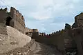The fort sits atop a 110 foot tall high hill that rises above the city of Kot Diji.[3] The fort's 30 foot tall walls encircle the uppermost portion of the fort,[3] resulting a narrow-width fortress with perimeter of 1.8 kilometres.[5] The fort contains three strategically placed towers that are each 50 feet tall.[3] The fort contains several sites for cannon placement, and contains numerous inner passages for protection.[3] The fort also contains a water reservoir, munition storage, prison, courtroom, numerous cells for security personnel, and a small regal residence.[3]