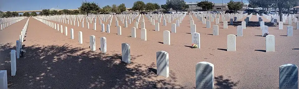 Fort Bliss National Cemetery is a United States National Cemetery in West Texas, located at Fort Bliss, a U.S. Army post adjacent to the city of El Paso. Administered by the Department of Veterans Affairs, it encompasses 82.1 acres (33.2 ha), and as of 2014, had over 50,000 interments. It was listed on the National Register of Historic Places in 2016.