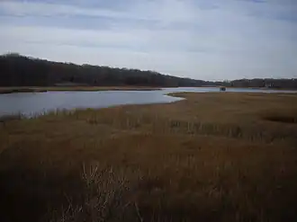 Fort Corchaug Archeological Site is a prehistoric archaeological site in Cutchogue on eastern Long Island in New York State. It is located west of the North Fork Country Club, on the south side of Main Road (New York State Route 25). The site shows evidence of 17th century contact between Native Americans and Europeans. Fort Corchaug itself was a log fort built by Native Americans. It may have been to protect the Corchaug tribe from other Indians, built with the help of Europeans.[3] Ralph Solecki, a prominent American archaeologist, grew up nearby and conducted several digs on site.[4]